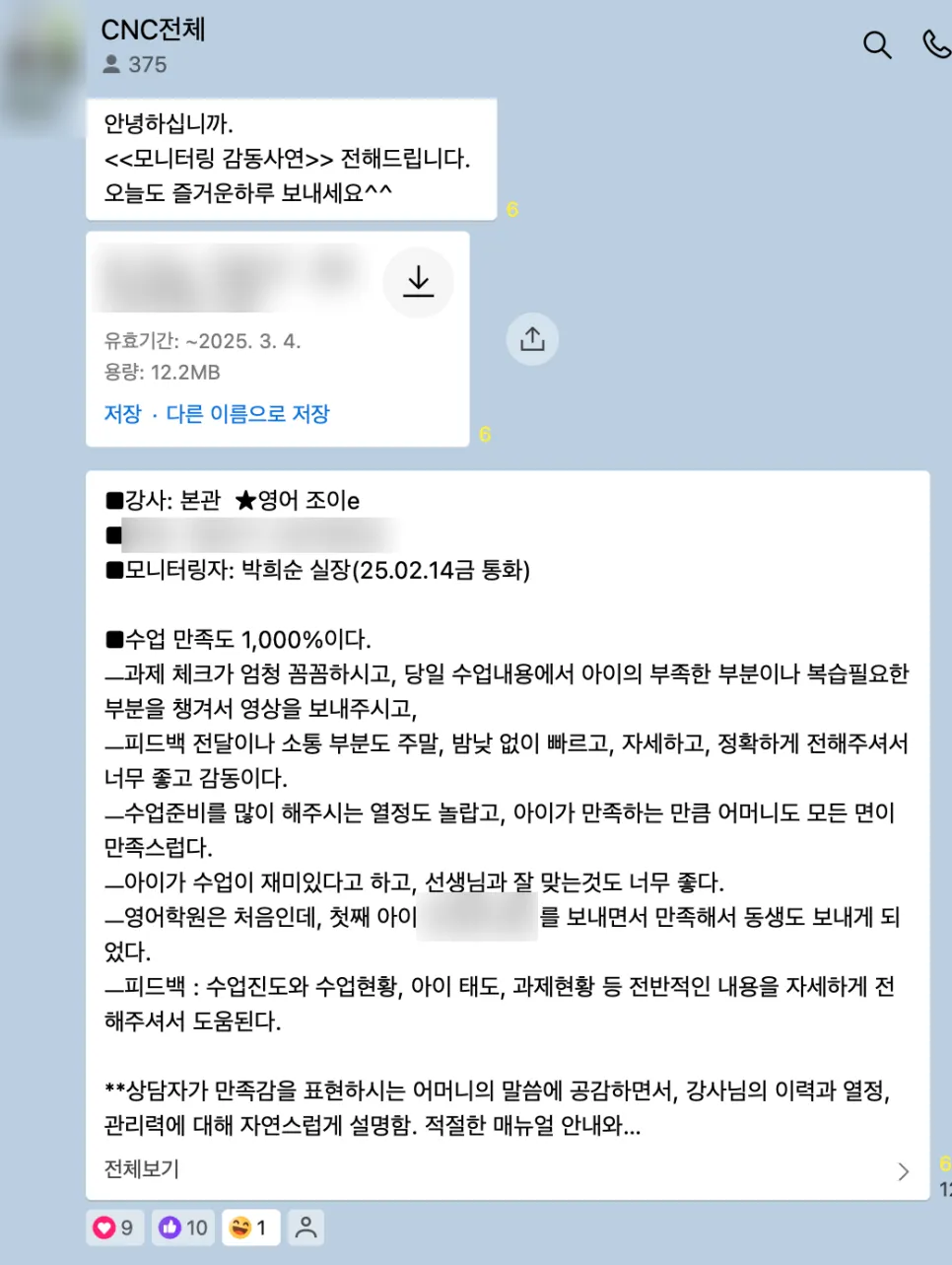 최선어학원에서 근무한 지 4년 차 즈음, 수지 캠퍼스에서 초등 최고 레벨인 송스 클래스를 담당하며 전체 학생 수 95명을 지도했습니다. 많은 아이들의 응원과 사랑을 받으며, 초등부 아이들과의 수업이 저와 잘 맞는다는 점을 깨달았습니다. 자세한 내용은 네이버 블로그도 참고 부탁드립니다.